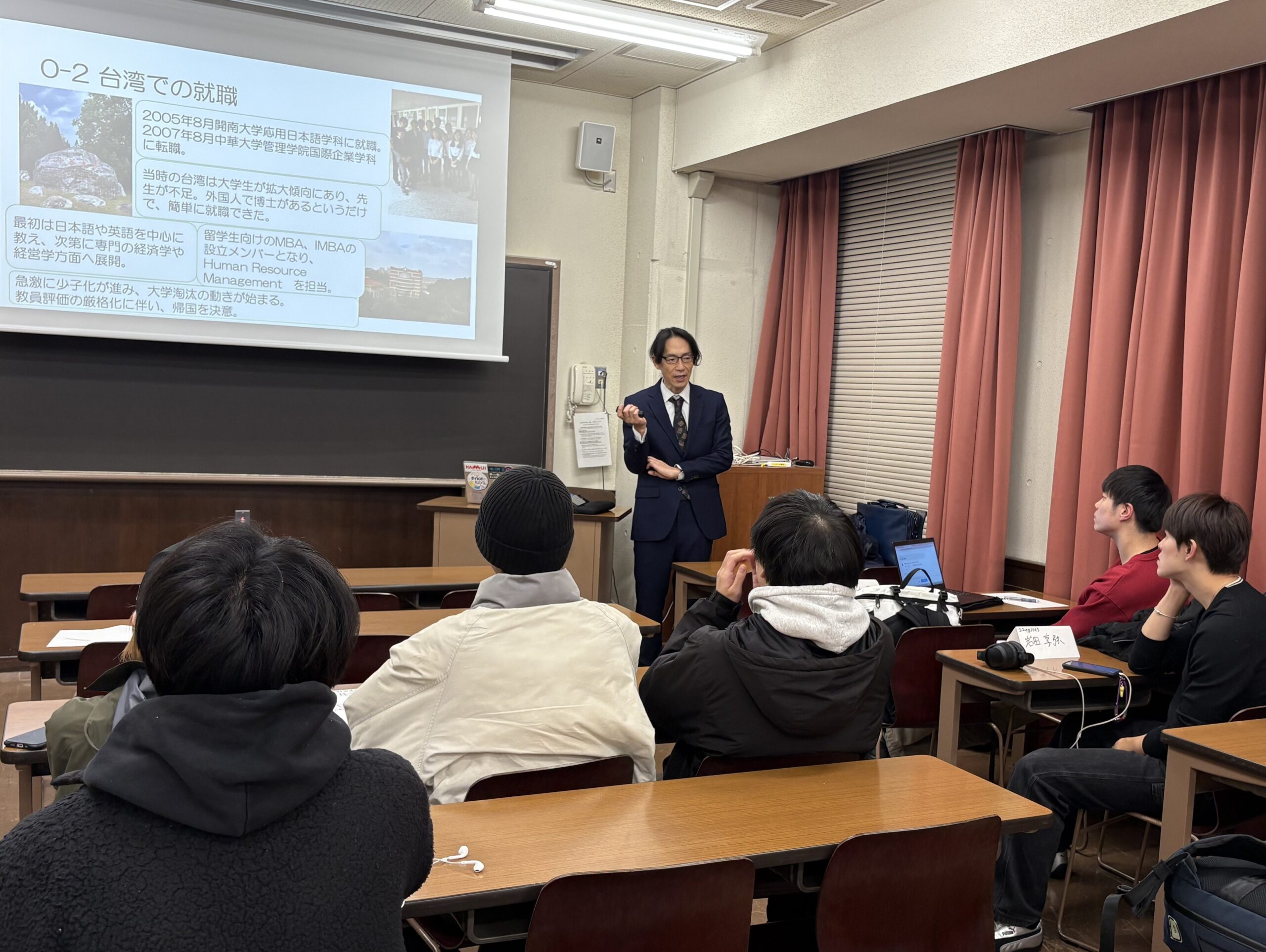本学での特別講義は、同代表處及び代表處教育部より推薦を頂いた講師をお招きし、台湾に関して経済貿易、国際ビジネスだけではなく、政治経済、歴史、文化、教育、観光など、幅広く取り上げ、日台関係に関する特別講義を開講します。これまでの講義概要、講師の紹介、講義の様子は以下のとおりです。